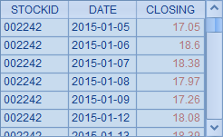 =demo.query("select * from STOCKRECORDS where STOCKID='002242'") |