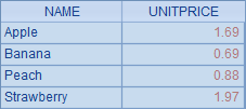 =A1.plot("Column","axis1":"x","data1":A2.(NAME),"axis2":"y","data2": A2.(UNITPRICE)) |