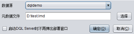 进行DQL Server部署时,如果想修改产品自带的datalogic逻辑数据库目录下的元数据文件和数据源配置,除了按照上述所说的手动修改配置文件部署,还可以在DQL元数据层设计器启动DQL Server时通过菜单传递属性值直接进行部署修改。