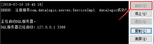 然后,点击“服务”->“启动DQL服务器”,弹出如下窗口: