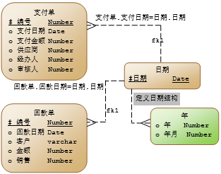 要完成上述查询,分析控件中必须列出支付单、回款单的指标和维度才可以。很简单,当元数据层中有多表时,访问DQL分组分析控件。页面字段区缺省就会列出元数据层文件中的全部表的指标。然后就可以通过外键属性化、同维表等同化、按维对齐汇总等方法,将多表关联透明化。用户可随意拖拽需要查询的指标做分析。
