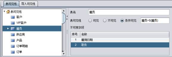 对于每个表,均可以设定为可见、不可见或者条件可见。