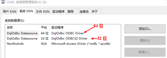 dqlodbcinst.exe需要以管理员身份运行,安装后在ODBC数据源管理程序的“驱动程序”栏下可对应找到如下图所示的DSN: