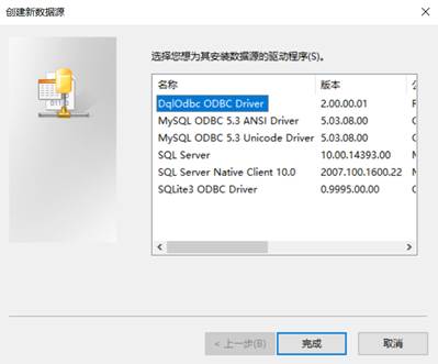 确定选择了”DqlOdbc ODBC Driver”后,点击“完成”,进入dql odbc配置界面: