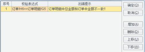 打开【填报】->【格间校验】,编辑校验表达式和出错提示,如下图所示: