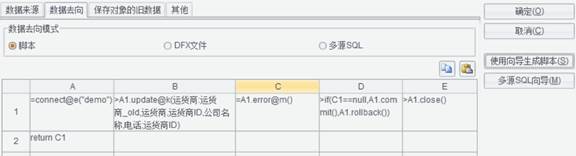使用向导制作行式填报表时,系统自动生成数据来源脚本、数据去向脚本、保存对象的旧数据和行式填报表。