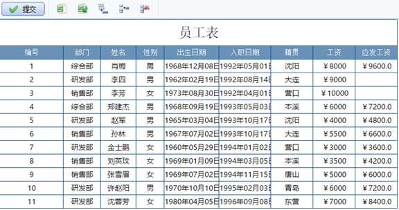 WEB预览(参见WEB预览)在增加行和插入行时,入职日期自动填写当前日期作为缺省值。