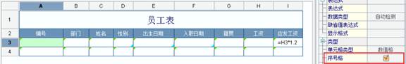 行式填报表中还可以使用单元格属性栏中的序号格