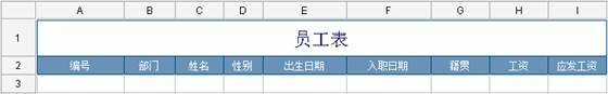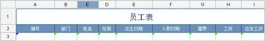 此时用到了对象名employee,表示此块区域的数据都取至employee,也就是数据来源中对象名为employee的数据表。对象employee中的字段名称对应物理表员工表中的同名字段。WEB预览时B3中的值取自employee.部门,C3中的值取自employee.姓名,D3-I3中的值依次取自employee.性别、employee.出生日期、employee.入职日期、employee.籍贯、employee.工资、employee.应发工资。由此可见填报表里的每个维度格、数值格的字段名称需与物理表里的字段名一致。