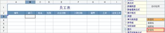选中A3单元格,在右侧单元格属性栏中设置A3的单元格类型为维度格: