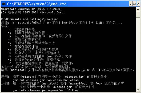 另一种常见的打war包的方法是用java的jar命令,此时要求你的机器安装了java环境,开始-》运行-》cmd回车后在命令行里输入jar,如果系统出现如下提示,则表示java环境安装正常: