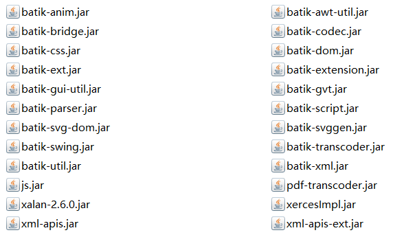 除上述lib目录中所述jar之外,还包含多个统计图jar,如下图所示: