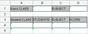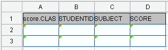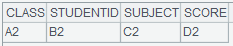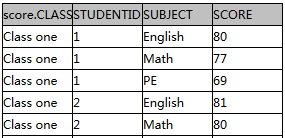 1,2,3行组成了一个行式表格区,这个序表由CLASS,STUDENTID,SUBJECT,SCORE几个字段组成,分片结果如下图: