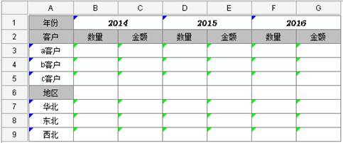 一般来说,维度格和数值格即为字段值,普通格为字段名。