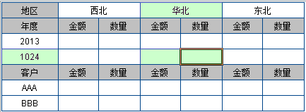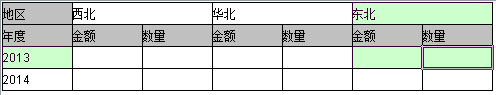 对于行式填报表,同一片区域中,数值格区域同一行即为同一条记录,数值格的内容作为相应的字段值。