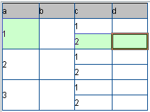 图2和图3是图1扩展后的效果,选中单元格背景色对应显示高亮的即为同一条记录,单元格的内容即为相应的字段值。