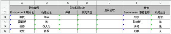 此例分成了两片,一片是由字段职称名称、教师姓名、开课、研究项目和是全兼职组成,一片是是由字段职称名称和教师姓名组成。分片结果如下图: