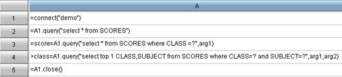 如图4.1.3-1为取数dfx文件的内容,返回score和class两个变量,每个变量为一个序表。