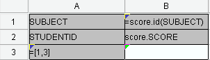 如图4.1.3-5中,维度格直接在单元格里定义,只取STUDENTID为1和3的数据。