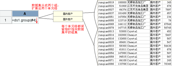 group函数是对数据集按照某个字段或者表达式进行分组,获得一组组的集合,然后从每组中取出一个指定字段或者表达式的值,放到单元格中进行扩展,扩展出来的每个单元格都保留了一个指针指向当前的组集,该组集称为当前组。