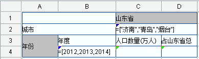 当维度格的单元格表达式是维序列时,按序列成员纵向或横向扩展表格。