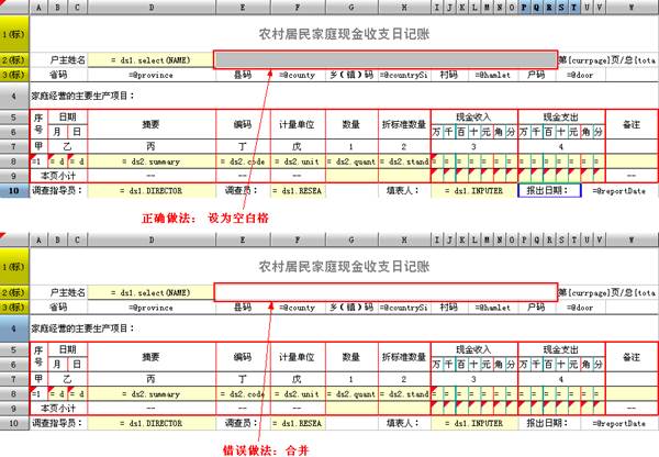 这个报表中,粉红色背景的单元格都属于没用的单元格,但是很多时候必须留着占位用。例如:C2单元格,其目的是把报表日期和报表编号分隔开,省得连在一起难看,同时当B4横向扩展出很多单元格时,报表日期要靠右对齐,因此中间必须有C2来占位。