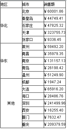 我们把11.1.1中的报表做些变化,不要把所有的记录用于分组,因为某些组用户并不关心,我们仅仅保留“华北”、“华东”这两个组,把剩余的组全部归并成一组,命名为“其他”,报表样式如下图所示: