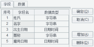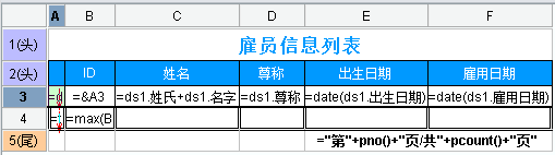 F3单元格表达式为:=date(ds1.雇用日期)