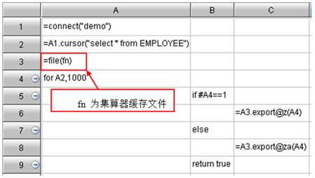 添加集算器数据集,程序自动将分批取出的数据进行缓存,数据集返回游标。