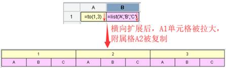 当可扩展单元格的扩展方向为横向时,该单元格进行的扩展称为横向扩展。此时该单元格会横向进行复制,复制出的单元格的数据值依次为表达式的结果数据值,表达式返回几个值,单元格就复制几个。
