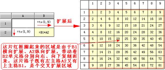 在交叉扩展中,有的单元格有可能既被横向扩展向右复制,也被纵向扩展向下复制,可是,单元格的横向扩展与纵向扩展这两种扩展是相互独立的,既可以先进行横向扩展,也可以先进性纵向扩展,并不会影响扩展之后的结果。