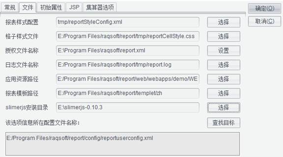 打开报表,点击【工具-选项】文件配置窗口,设置slimerjs的安装目录。