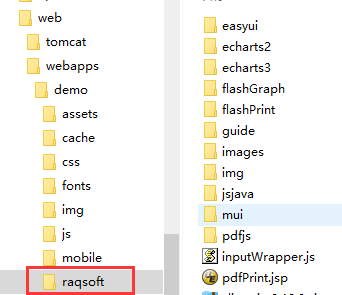 2、 echartsJSUrlPrefix配置echarts图形的js所在的父目录的访问地址,即下图中所示的raqsoft目录: