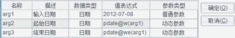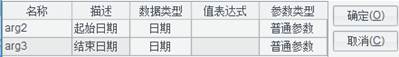 简单的说,动态参数就是可以使用表达式的参数。在这个报表里,进入主菜单-配置-参数,添加一个新参数arg1,数据类型为日期型,把arg2和arg3两个参数的参数类型都改成动态参数,arg2的值填写pdate@w(arg1),arg3的值填写pdate@we(arg1)。