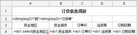 A2单元格表达式为:=string(arg2)+"到"+string(arg3)+"订货单"