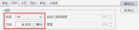 在菜单中选择【报表】->【报表属性】,弹出报表属性窗口,选择【打印】标签,在这里我们把纸张方向改为:横向。点【确定】完成设置,如图: