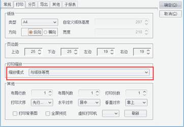 注:如果在报表属性的分页标签下,选择了按行分页,则该报表不允许进行缩放打印