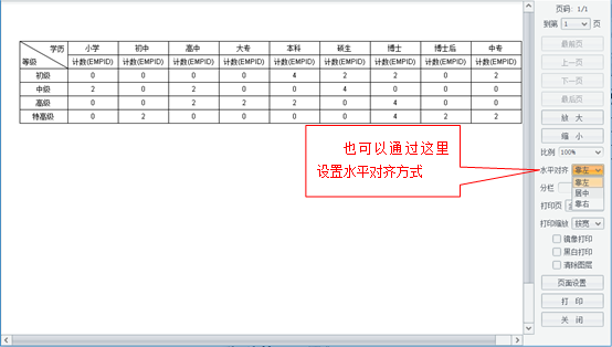 此时报表内容被按着纸的宽度做一定比例的缩小,可以完整的显示在报表中了。接下来我们修改一下页边距和对齐方向,让报表看起来更美观一点。
