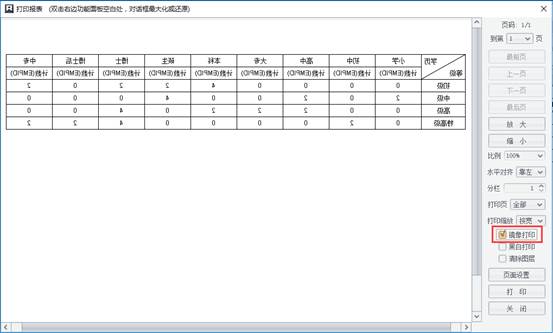 在上述打印预览界面上,勾选【镜像打印】后,预览如下图所示。