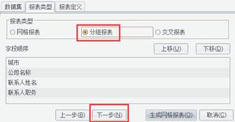 第三步:“文件”->“新建报表”,利用向导定义数据集,新建一个分组报表。