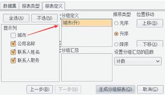 将【报表类型】设为“分组报表”,点【下一步】按钮进行分组定义。