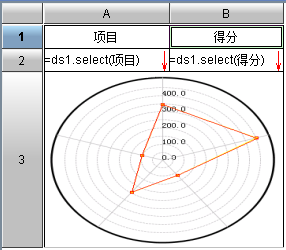 其中的分类轴和系列的设置与简单的二维图完全一样,分类轴即为圆周上刻度的定义,系列即为圆周上颜色的定义。