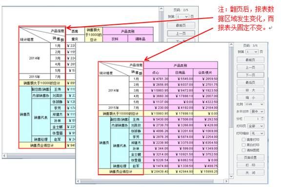 打印时报表表头固定,可以在每页中重复打印,方便用户浏览数据