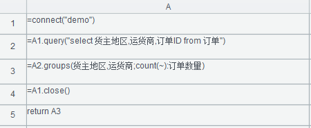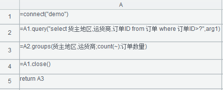 可直接在脚本编辑区添加计算表达式,通过return语句或者不写(不写时最后一个语句如果是赋值格,则会自动被返回)将结果集返回到润乾报表数据集中,脚本编辑区的表达式语法需遵循集算器语法。