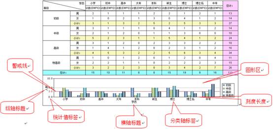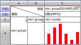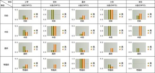 如下图所示,通过与柱形图结合,统计不同学历下各个等级的人数:
