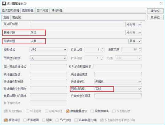 注:更多统计图属性设置请参考《用户参考》统计图章节