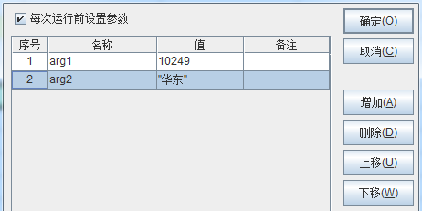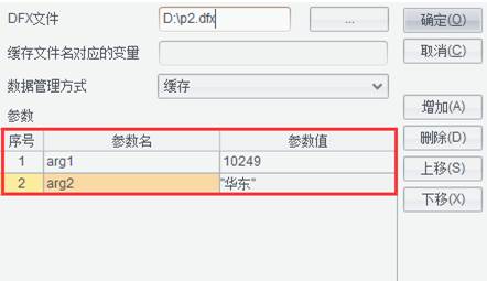 按钮,选择集算器文件后会自动将dfx中的参数列在集算器数据集窗口的参数列表中,用户可根据需要修改参数值即可,如下图: