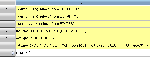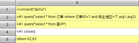 ● 举例:通过return语句从集算器文件中返回多个数据集