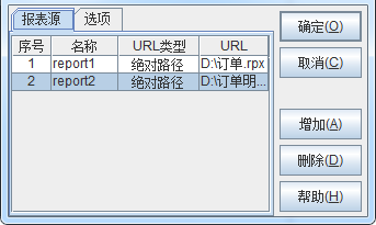 单击添加按钮来添加新的报表源,双击url栏在弹出的“打开”窗口中选择所要添加的报表。url类型有相对路径、绝对路径两种。