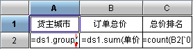 A2单元格表达式为:=ds1.group(货主城市;货主城市:1)